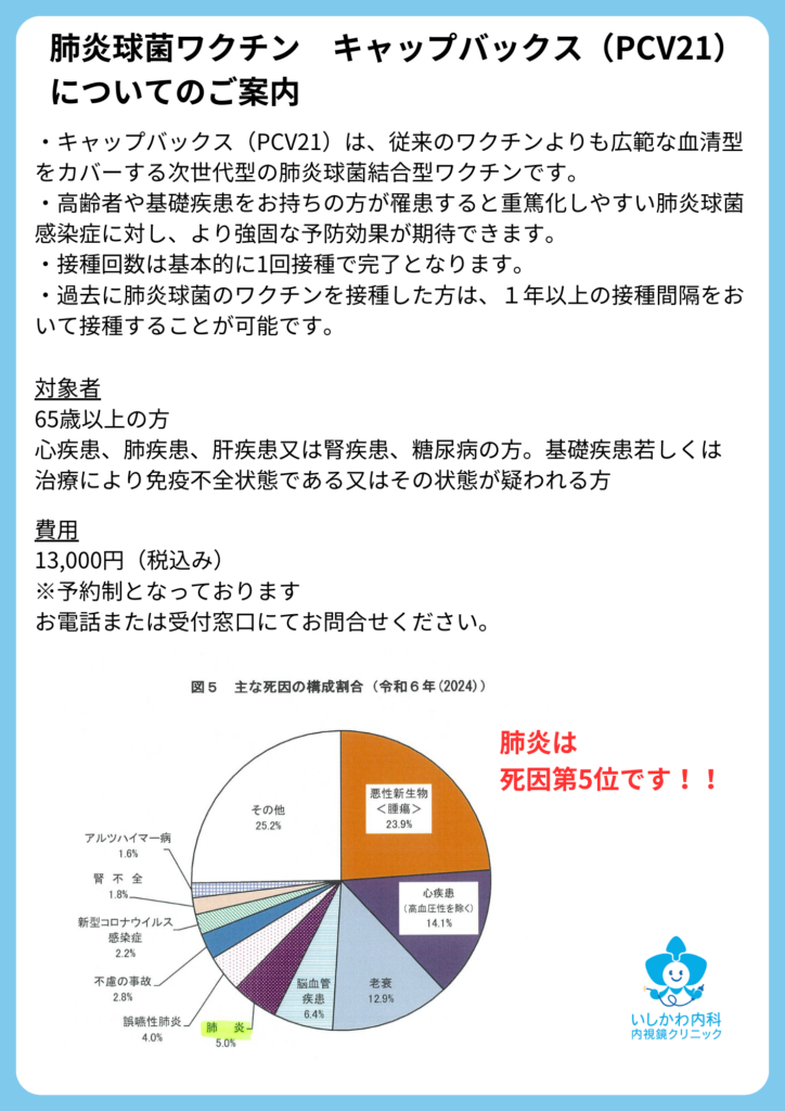 💉肺炎球菌ワクチン「キャップバックス」のご案内